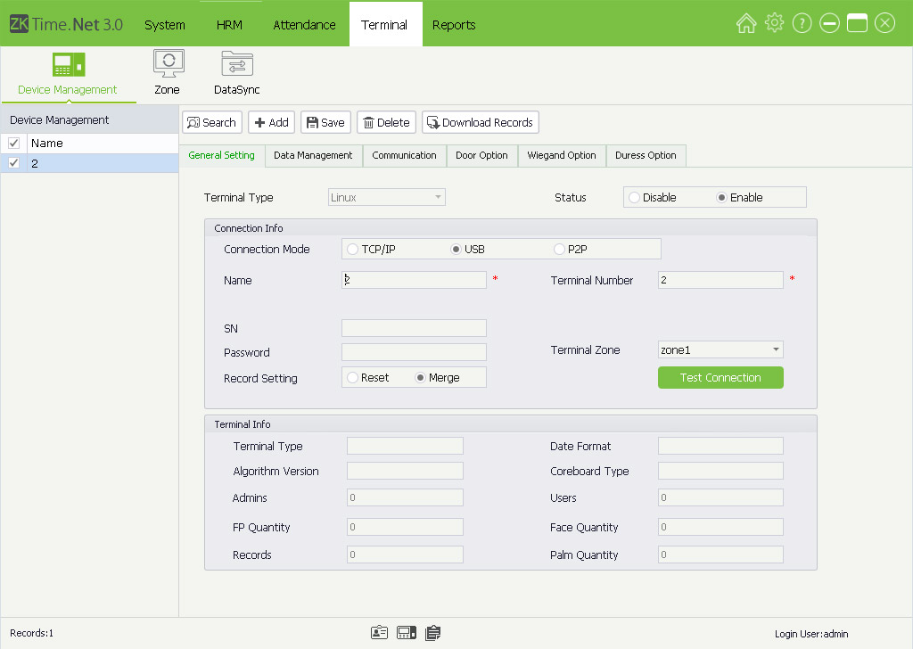 اطلاعات تردد پرسنل را نیز می توان هم از طریق شبکه (TCP/IP)، هم کابل USB (بسته به مدل دستگاه) و هم حافظه USB به این نرم افزار منتقل نمود.